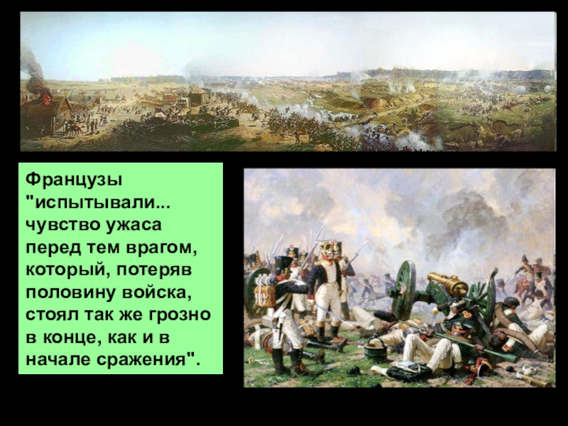 Слайд 36Французы "испытывали... чувство ужаса перед тем врагом, который, потеряв половину войска,