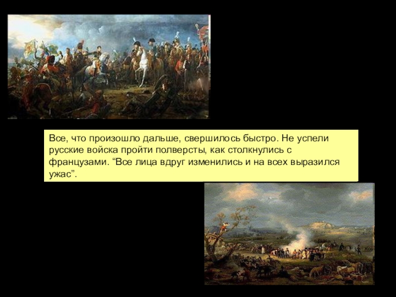полверсты, как столкнулись с французами. “Все лица вдруг изменились и на всех выразился ужас”.