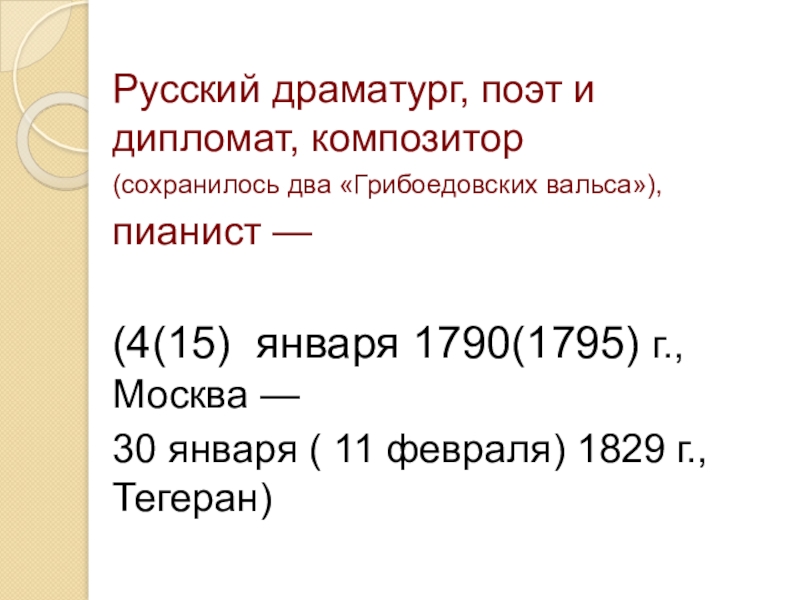 Слайд 3Русский драматург, поэт и дипломат, композитор