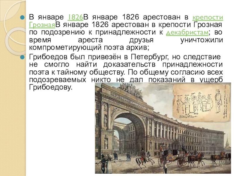 В январе 1826В январе 1826 арестован в крепости ГрознаяВ январе 1826