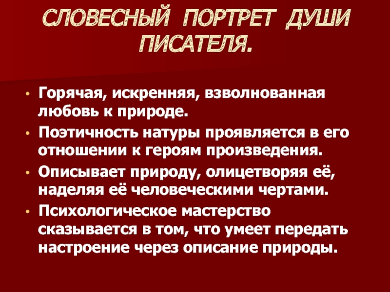 Слайд 50СЛОВЕСНЫЙ ПОРТРЕТ ДУШИ ПИСАТЕЛЯ.