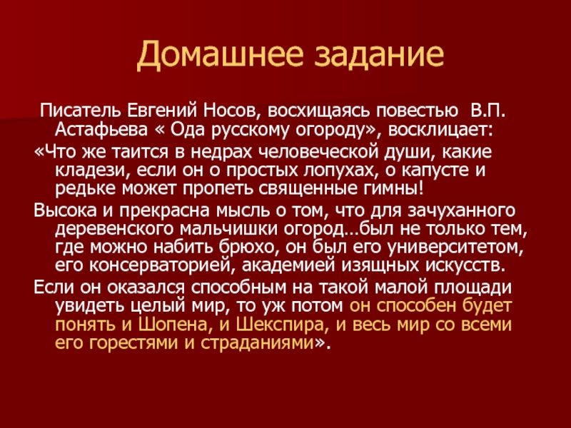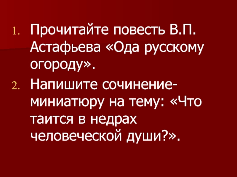 Слайд 39Прочитайте повесть В.П. Астафьева «Ода русскому огороду».