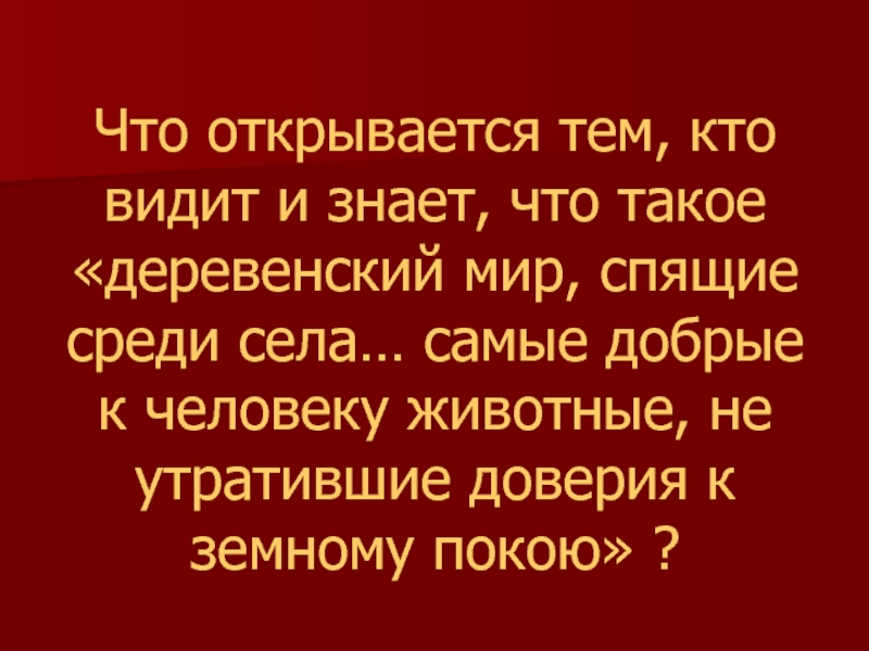 Слайд 31Что открывается тем, кто видит и знает, что такое «деревенский мир,