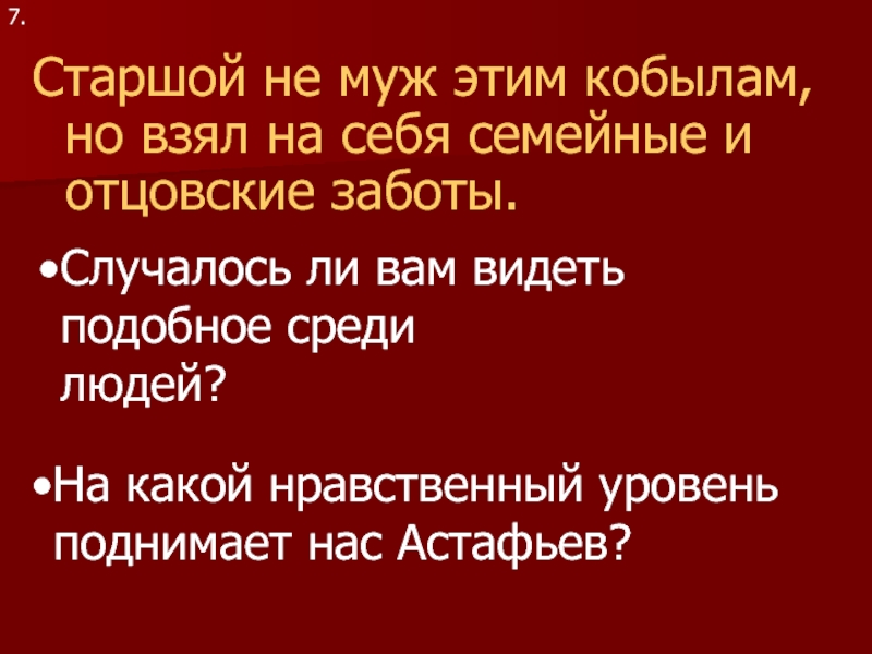 Слайд 11Старшой не муж этим кобылам, но взял на себя семейные и