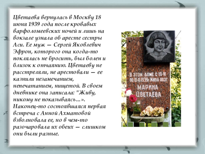 Слайд 14Цветаева не могла не вернуться в Россию, и она