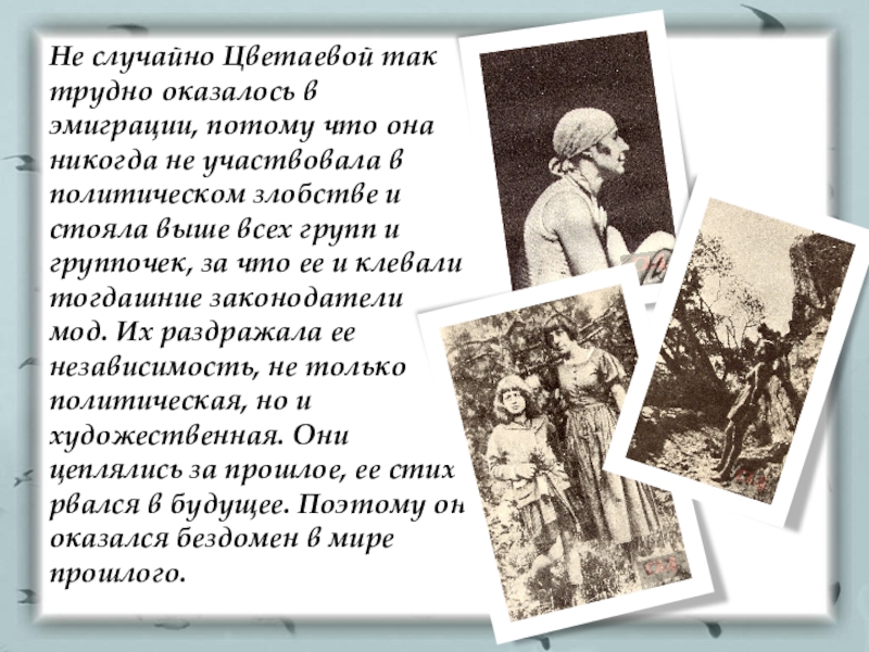 Слайд 13Не случайно Цветаевой так трудно оказалось в эмиграции, потому что она