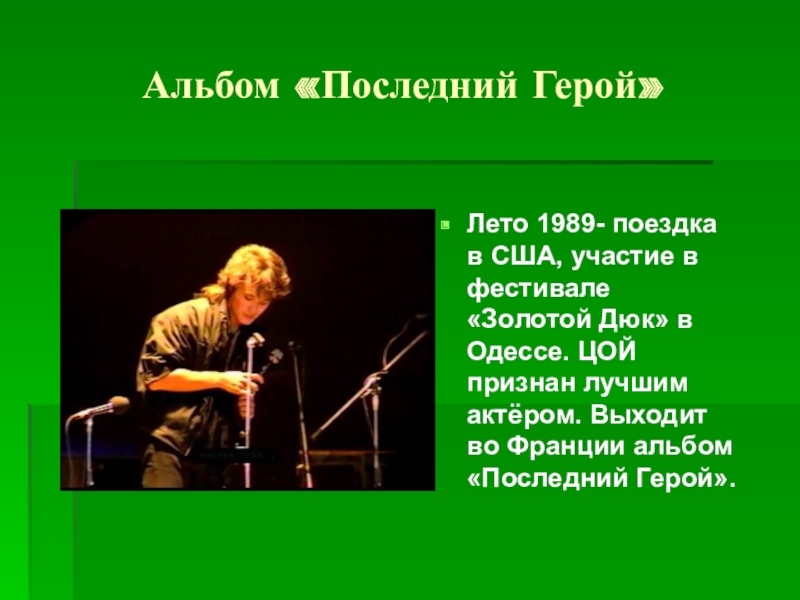 Дюк» в Одессе. ЦОЙ признан лучшим актёром. Выходит во Франции альбом «Последний Герой».