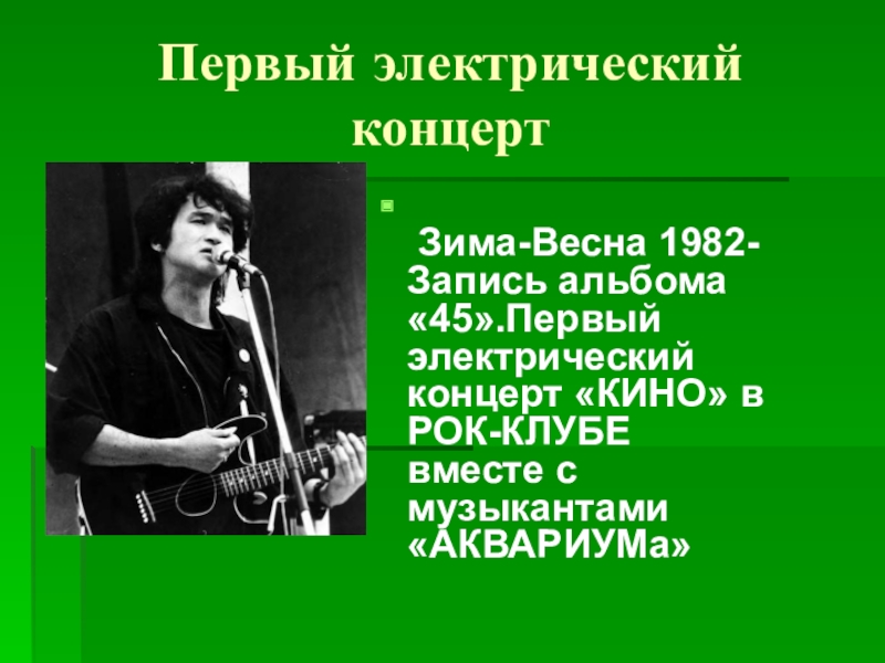 Зима-Весна 1982- Запись альбома «45».Первый электрический концерт «КИНО»