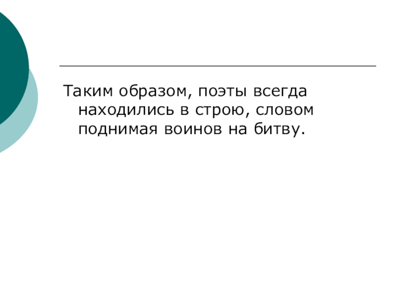 Слайд 18Таким образом, поэты всегда находились в строю, словом поднимая воинов на