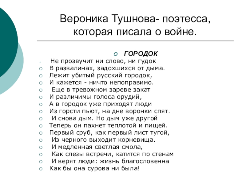 Слайд 12Вероника Тушнова- поэтесса, которая писала о войне.