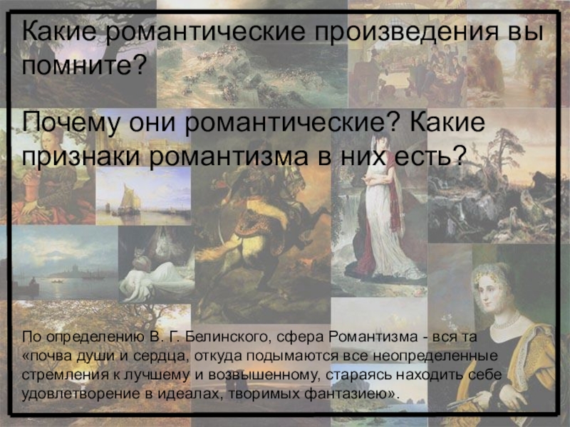 По определению В. Г. Белинского, сфера Романтизма - вся та