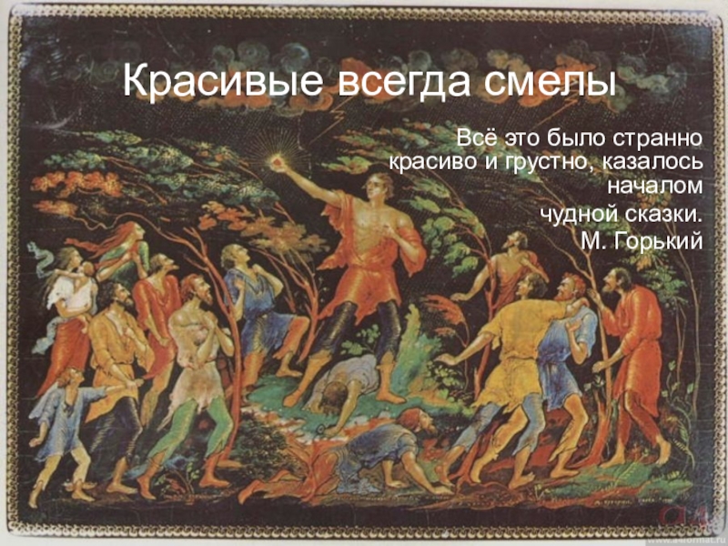 “молодой красавец, красивые - всегда смелы”, “в очаг его светилось