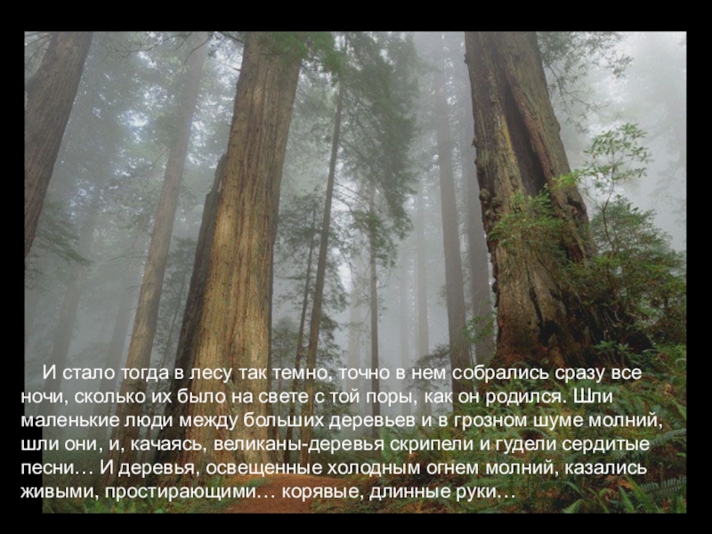И стало тогда в лесу так темно, точно в нем собрались сразу все