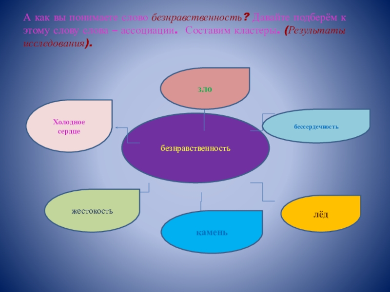 Слайд 6А как вы понимаете слово безнравственность? Давайте подберём к этому слову