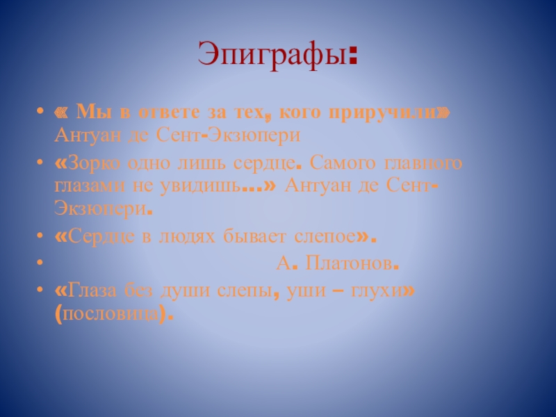 одно лишь сердце. Самого главного глазами не увидишь...» Антуан де Сент-Экзюпери.