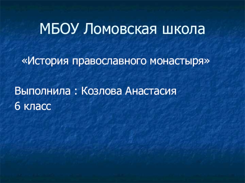 МБОУ Ломовская школа  «История православного монастыря»Выполнила : Козлова Анастасия 6 класс