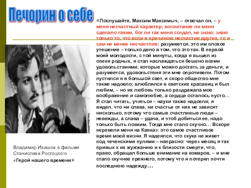Владимир Ивашов в фильме Станислава Ростоцкого «Герой нашего времени»