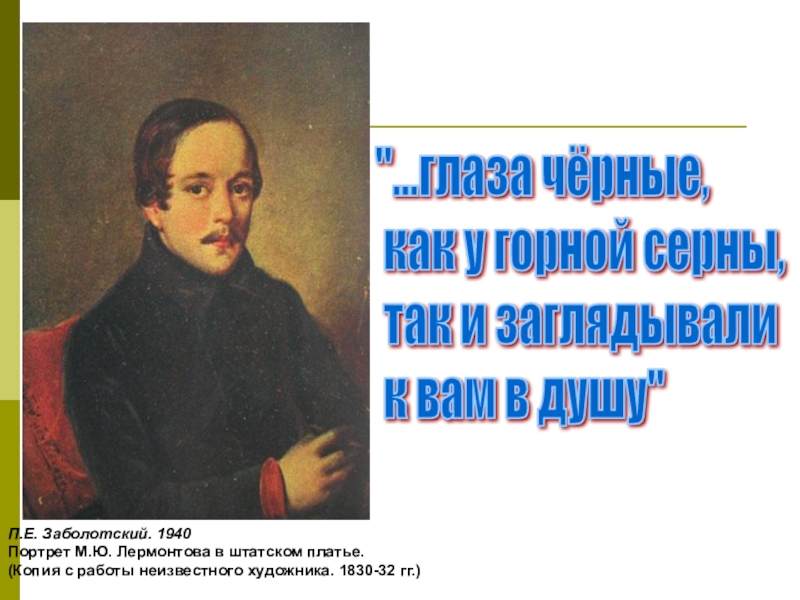 Портрет М.Ю. Лермонтова в штатском платье.