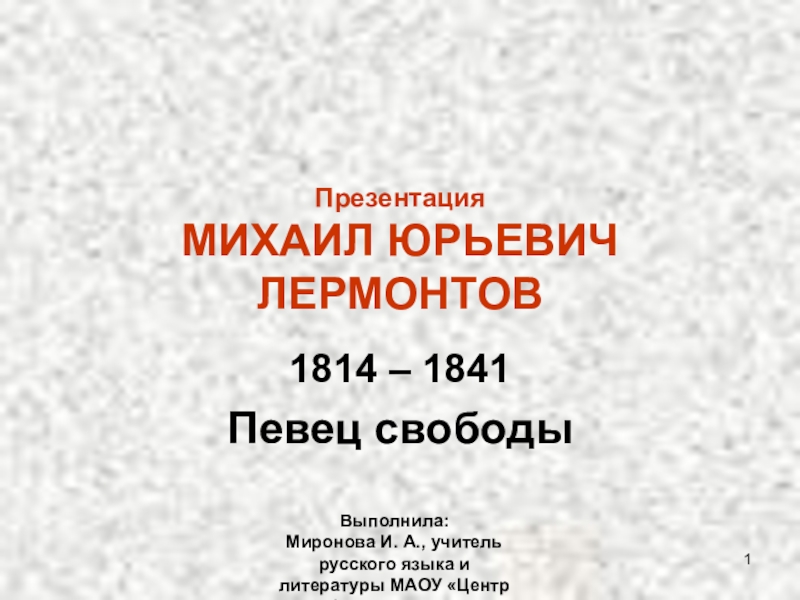 МИХАИЛ ЮРЬЕВИЧ ЛЕРМОНТОВ
