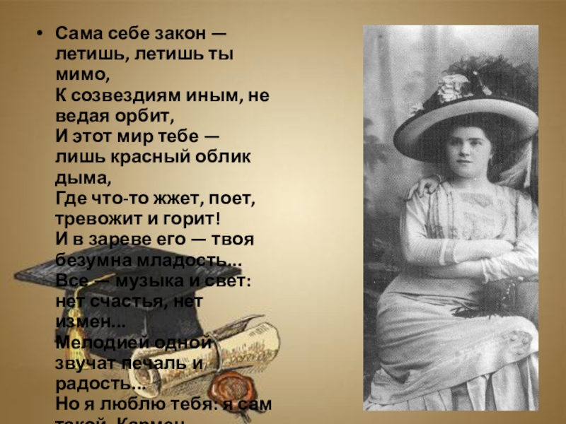 Слайд 30Сама себе закон — летишь, летишь ты мимо,