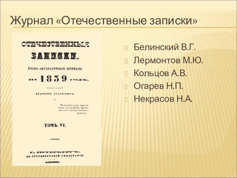 Слайд 28СОТРУДНИКИ ЖУРНАЛА «ОТЕЧЕСТВЕННЫЕ ЗАПИСКИ»
