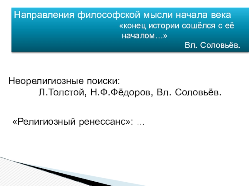 Л.Толстой, Н.Ф.Фёдоров, Вл. Соловьёв.