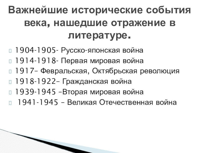 Важнейшие исторические события века, нашедшие отражение в литературе.