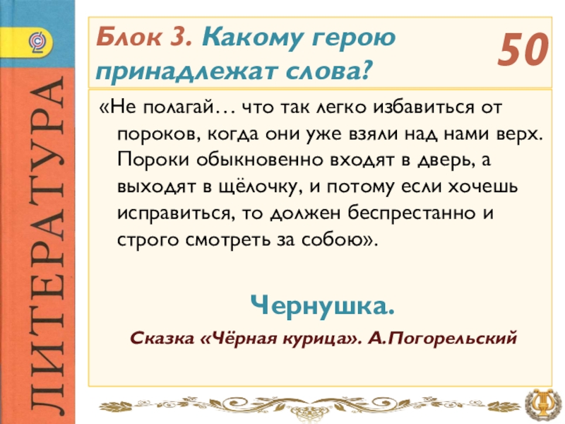 Слайд 18Блок 3. Какому герою принадлежат слова?