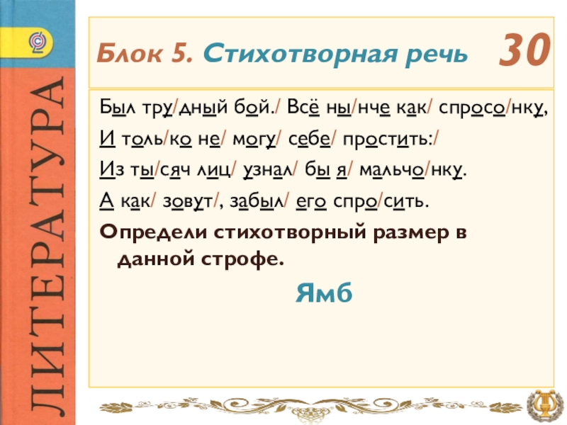 Был тру/дный бой./ Всё ны/нче как/ спросо/нку,