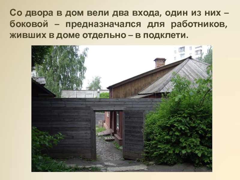 боковой – предназначался для работников, живших в доме отдельно – в подклети.