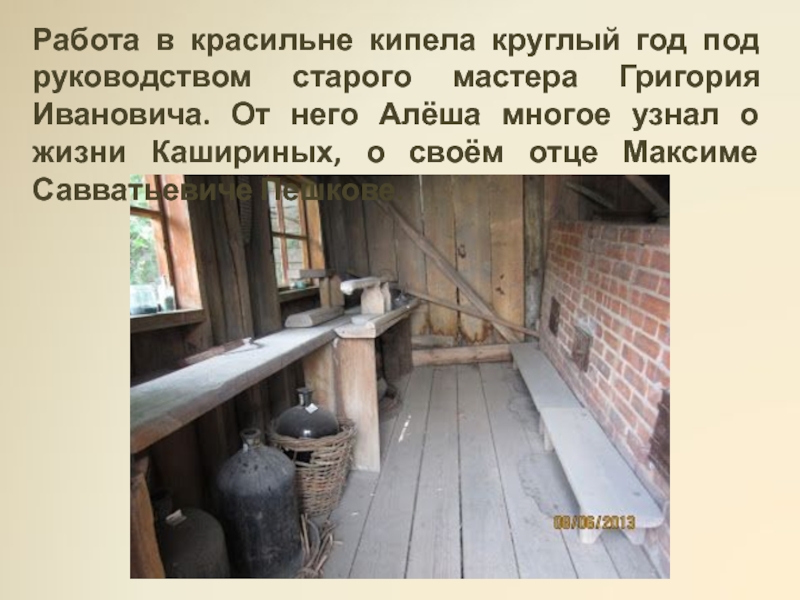 Слайд 7Работа в красильне кипела круглый год под руководством старого мастера Григория