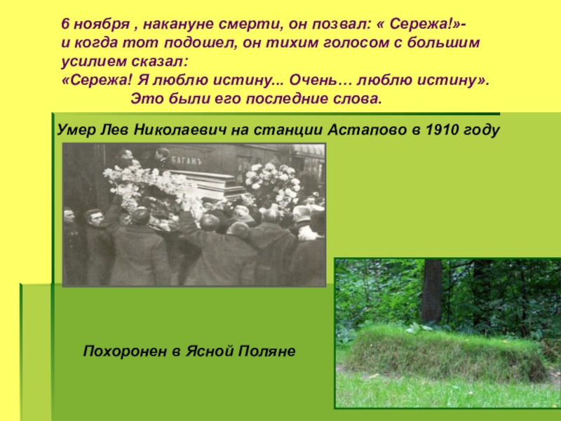 Умер Лев Николаевич на станции Астапово в 1910 году