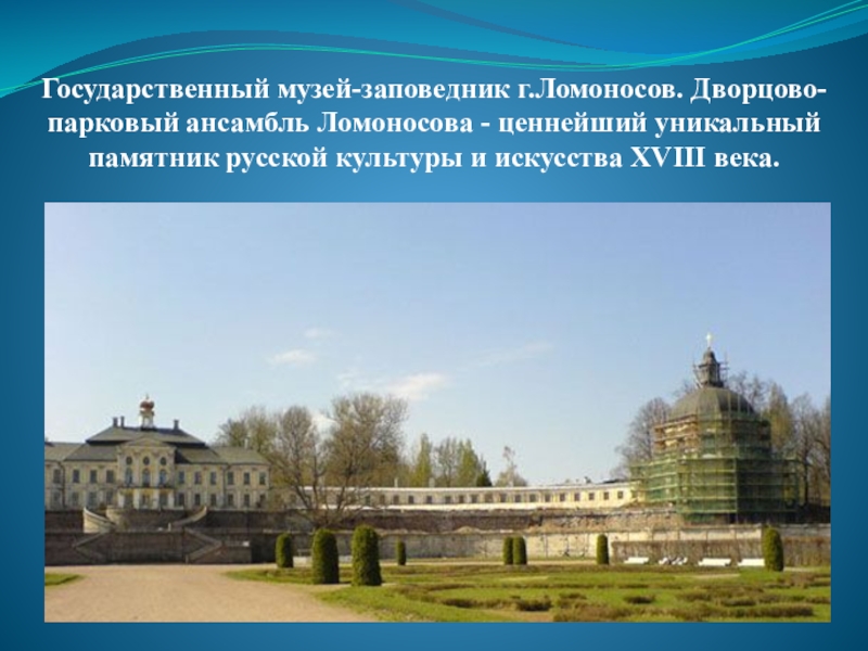 Государственный музей-заповедник г.Ломоносов. Дворцово-парковый ансамбль Ломоносова - ценнейший уникальный памятник русской