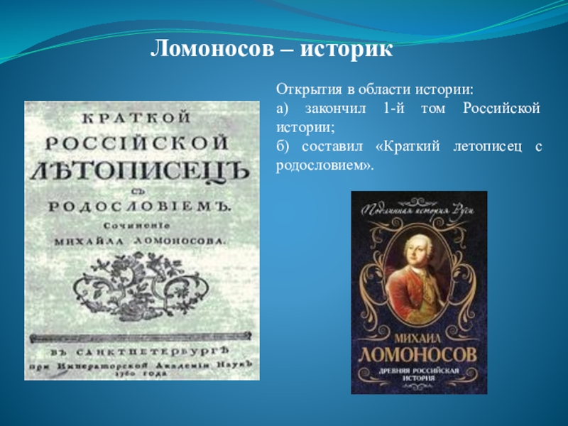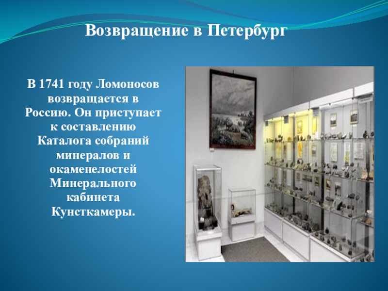 В 1741 году Ломоносов возвращается в Россию. Он приступает к составлению
