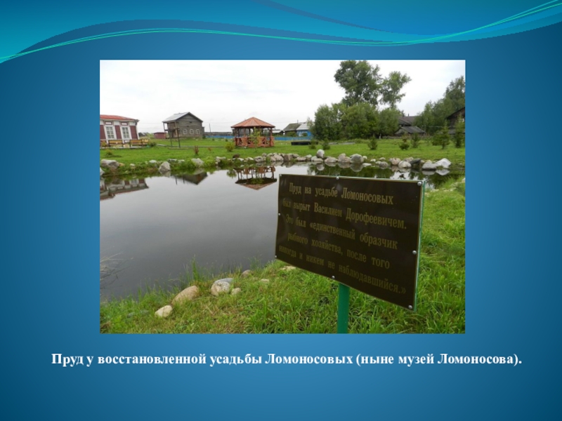 Пруд у восстановленной усадьбы Ломоносовых (ныне музей Ломоносова).