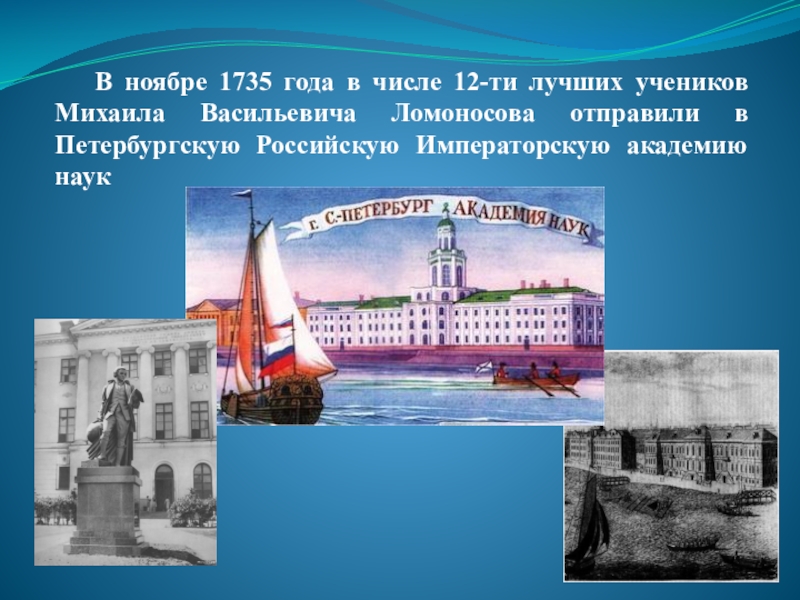 лучших учеников Михаила Васильевича Ломоносова отправили в Петербургскую Российскую Императорскую академию наук