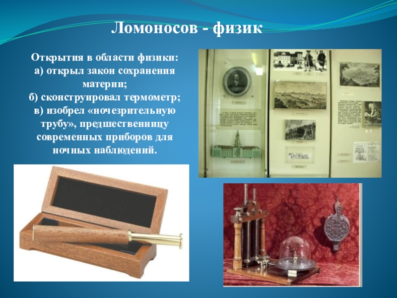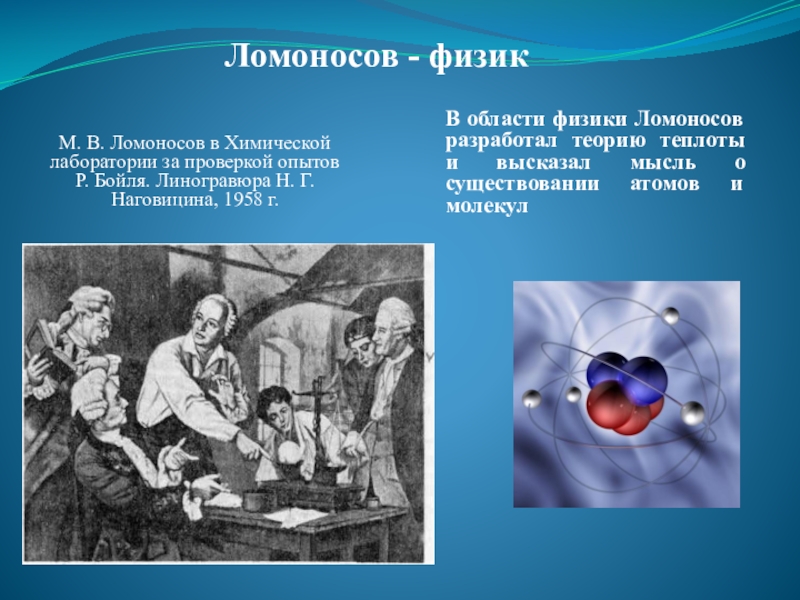 В области физики Ломоносов разработал теорию теплоты и высказал