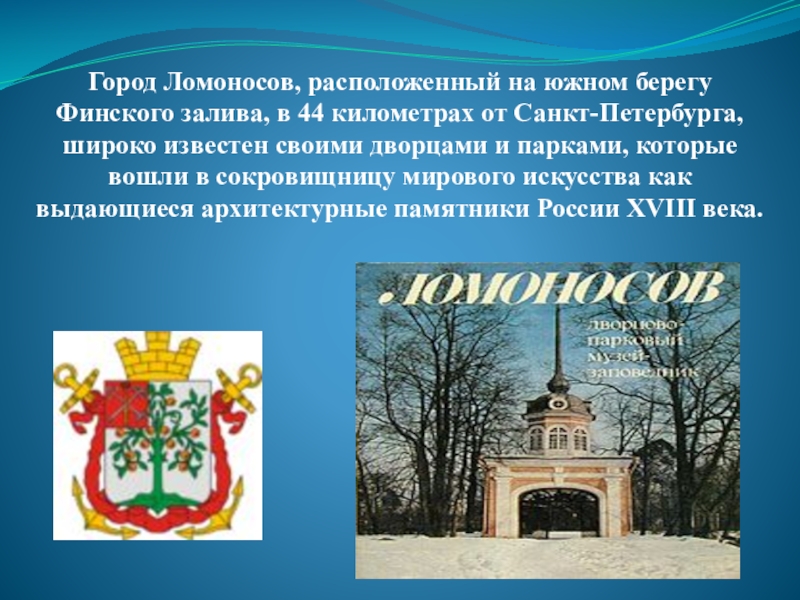 от Санкт-Петербурга, широко известен своими дворцами и парками, которые вошли в сокровищницу мирового искусства как выдающиеся архитектурные памятники России XVIII века.