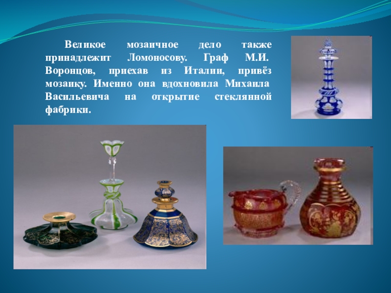 привёз мозаику. Именно она вдохновила Михаила Васильевича на открытие стеклянной фабрики.