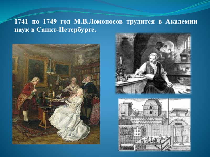 1741 по 1749 год М.В.Ломоносов трудится в Академии наук в Санкт-Петербурге.