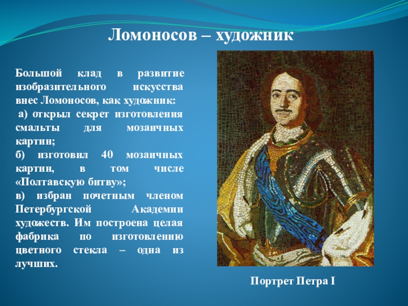 Большой клад в развитие изобразительного искусства внес Ломоносов,