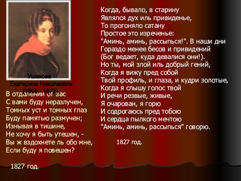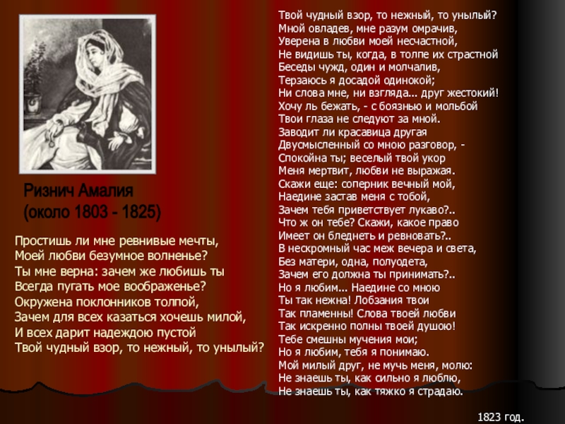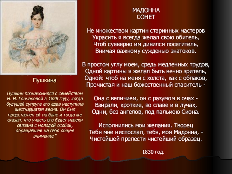 Черты далекой, бедной девы!..