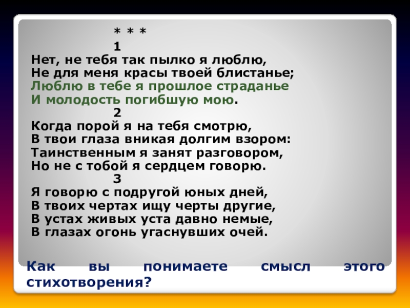 Слайд 30Как вы понимаете смысл этого стихотворения?