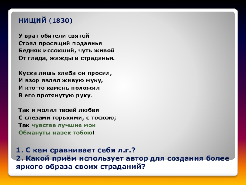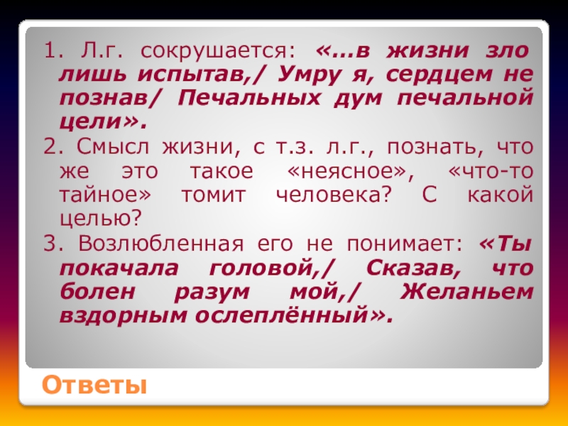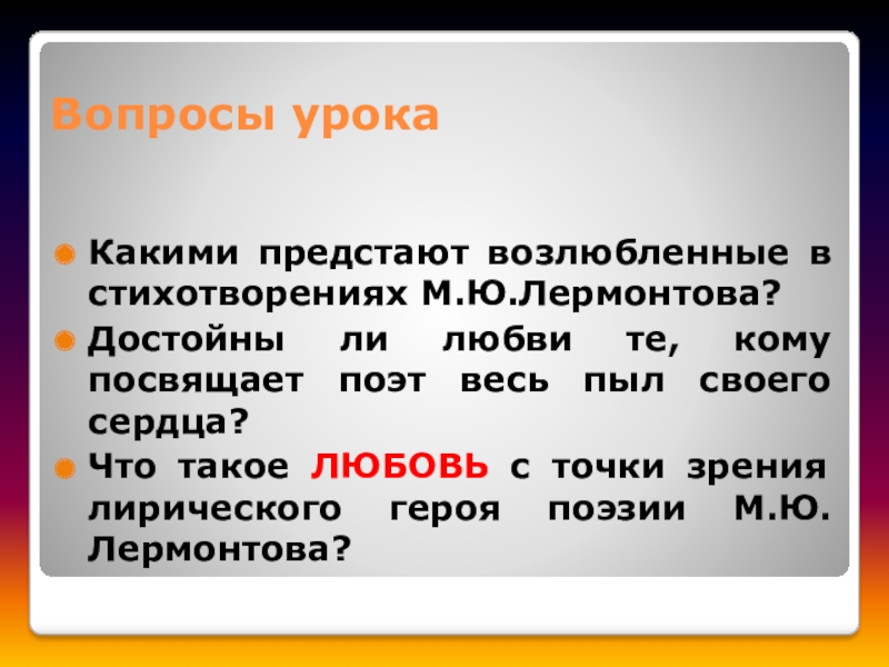 Что такое ЛЮБОВЬ с точки зрения лирического героя поэзии М.Ю.Лермонтова?