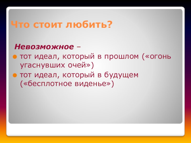 тот идеал, который в прошлом («огонь угаснувших очей»)