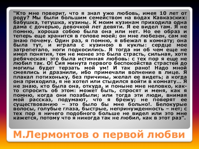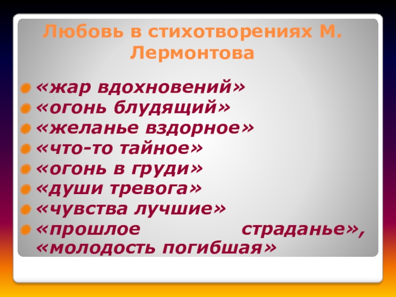 Слайд 35Любовь в стихотворениях М.Лермонтова