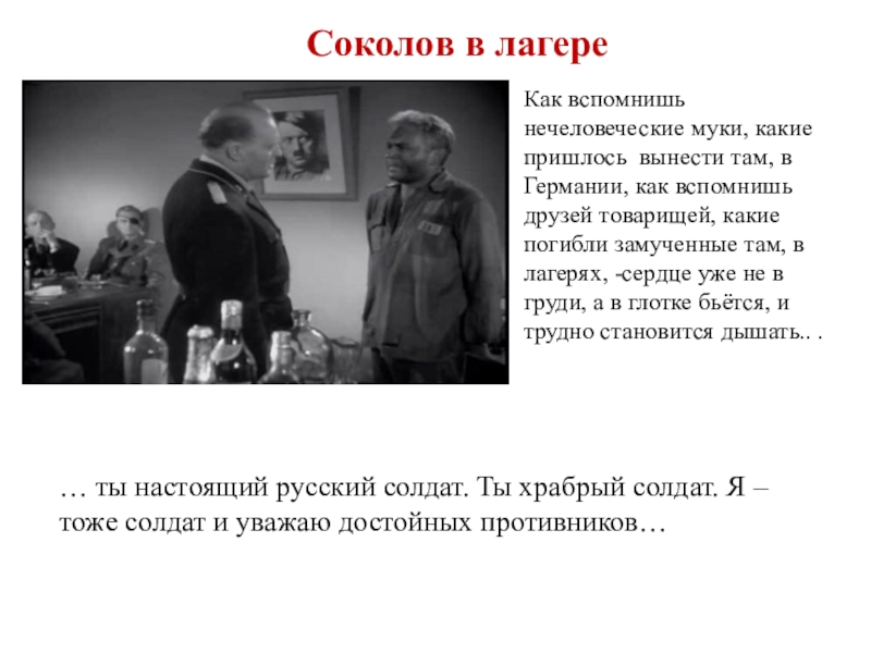 … ты настоящий русский солдат. Ты храбрый солдат. Я – тоже солдат и уважаю достойных противников…