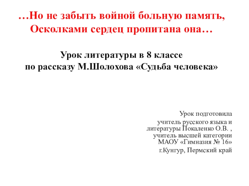 учитель русского языка и литературы Покаленко О.В. , учитель высшей категории МАОУ «Гимназия № 16»