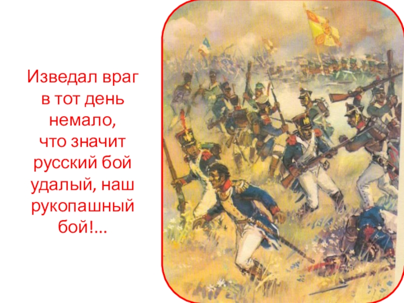Изведал враг в тот день немало, что значит русский бой удалый, наш рукопашный бой!...