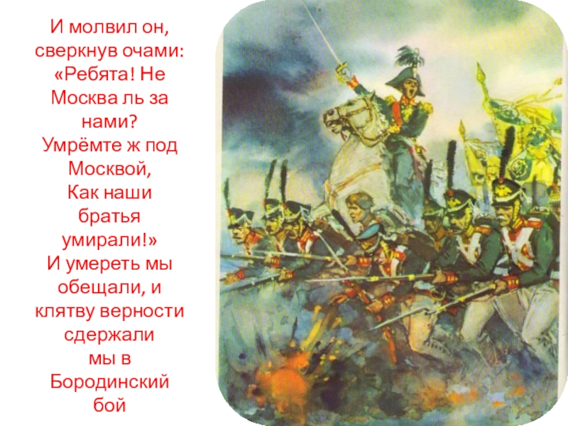 Слайд 11И молвил он, сверкнув очами: «Ребята! Не Москва ль за нами? Умрёмте ж